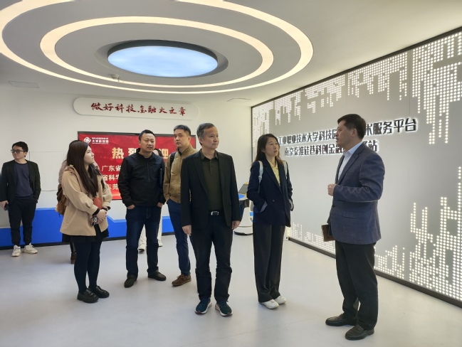 张伟良一行参观了园区公共技术服务平台和科创金融服务驿站,详细了解了科技园在校企合作、创新平台建设方面的特色模式。座谈会上,施成介绍了园区的发展历程、服务体系,以及科技园在科技成果转化、校企合作、人才培养等方面的创新实践与成效,分享了通过“产教融合”助力中小企业成长的经验。张伟良对科技园运营成果表示高度认可,并分享了广东省在孵化器建设、政策支持及产业链协同方面的先进做法。双方还围绕孵化器运营管理、资源对接及区域协同创新等话题进行了深入探讨。