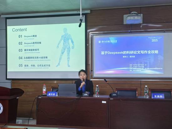 盛杰霏基于科研工作者实际需求,构建了“AI+学术写作”的立体化解决方案。她紧密结合自身的实际操作案例以及使用情况,围绕AI工具怎么看、怎么搜、怎么用三个方面进行深入讲解。她表示,教师在后续阶段可充分结合讲座PPT所呈现的内容进行反复练习,才能更为娴熟地掌握各类工具的具体使用方法,进而更好地掌握这一技能,显著提升科研效率与质量。