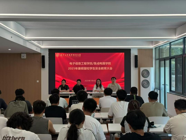 为切实做好暑假期间留校学生安全教育管理工作,增强学生安全防范意识,7月4日,电子信息工程学院/集成电路学院在一站式学生社区匠心讲堂召开2025年暑假留校学生安全教育大会。学院党委副书记蒋丽洁,辅导员代表、全体暑假留校学生参加会议。