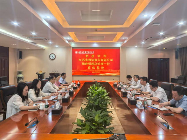 8月15日,江苏省通信服务有限公司副总经理杨建明一行来校调研交流并洽谈合作,永利官网党委副书记、校长何学军在行政楼辅楼一楼会议室接待了来宾一行,学校科技处、发展合作处副处长宣慧,电子信息工程学院/集成电路学院党委书记、院长杨燕以及相关负责同志热情接待并参与了此次交流洽谈。