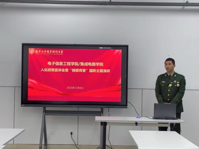 为激发广大学子投身国防、报效祖国的热情,助力意向入伍学子了解入伍政策,做好军旅生涯规划,12月7日,电子信息工程学院/集成电路学院在“一站式”学生社区多功能会议室举办入伍政策宣讲会暨“铸盾青春”国防主题演讲活动。本次活动邀请四位退役大学生士兵结合军旅经历,从政策解读到热血故事、使命担当,为同学们带来了一堂充满情怀的国防教育课。