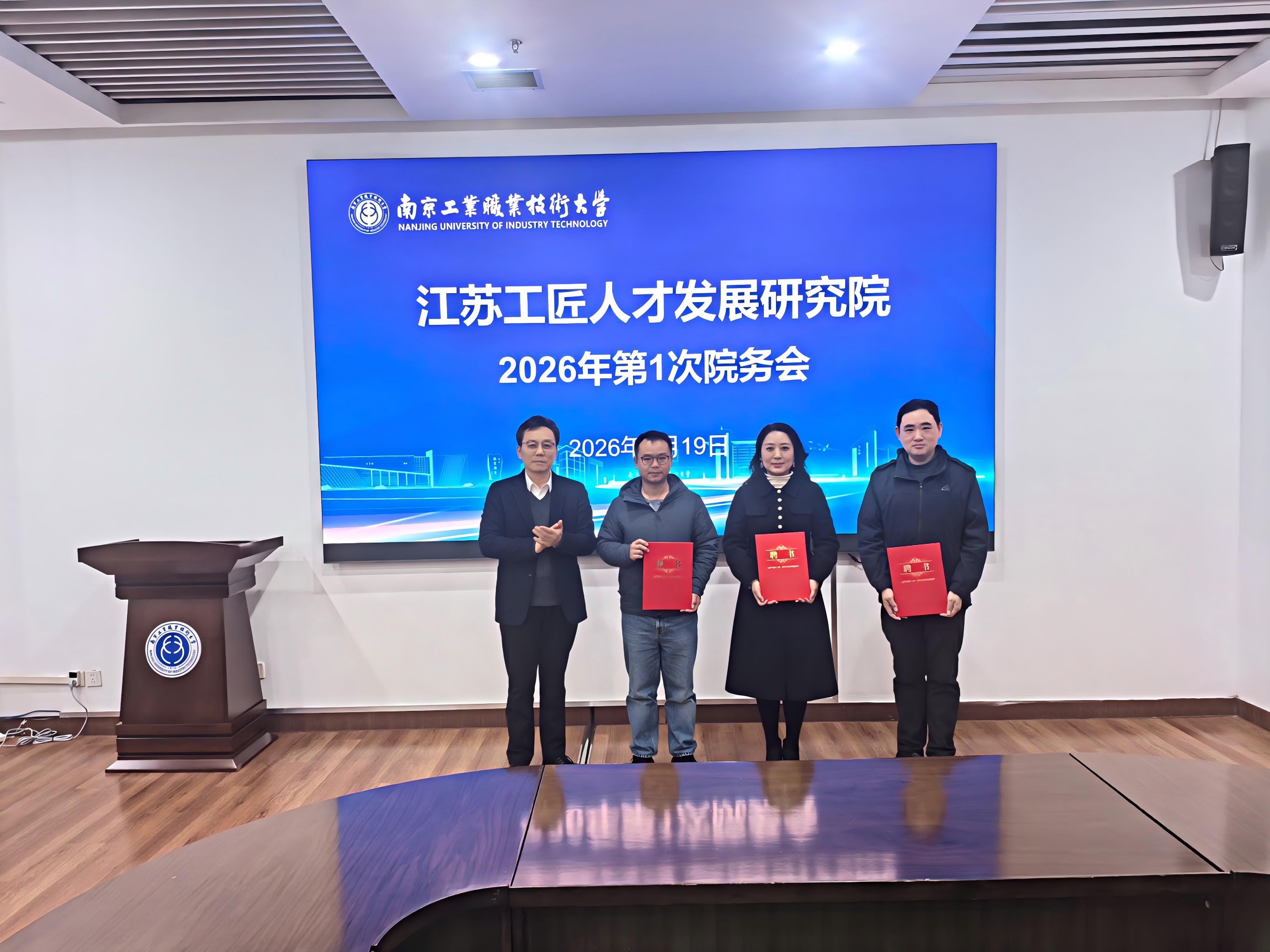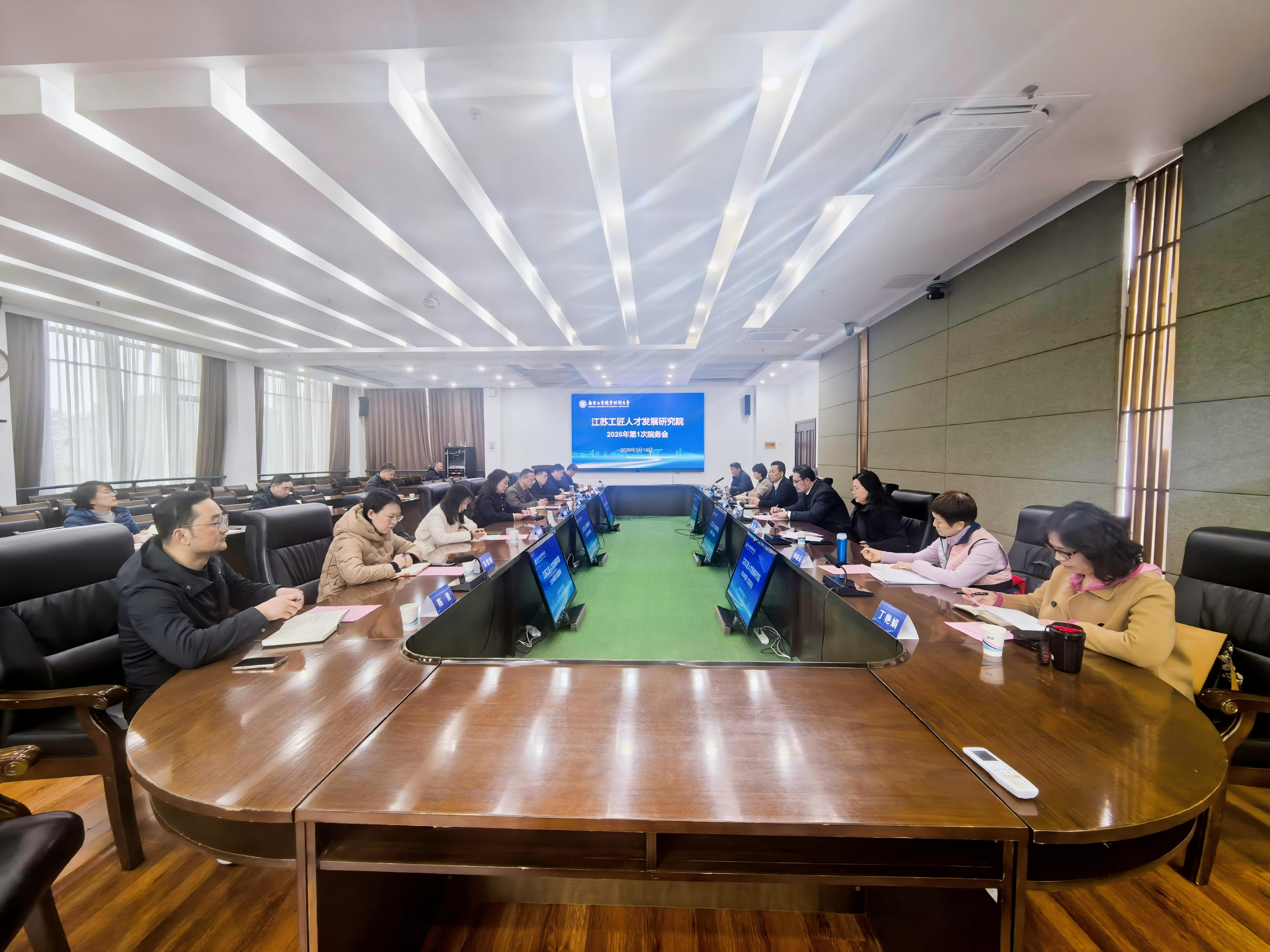 3月19日下午,江苏工匠人才发展研究院(以下简称“工研院”)2026年第1次院务会议在永利官网召开。工研院院务会主任、永利官网党委常委、副校长魏萍,省教育科技工会副主席崔文华出席会议并讲话。工研院院务会常务副主任兼院长马成荣,省产业工人发展研究中心、省总工会宣传和网络工作部、省劳动关系研究院(江苏工匠学院)、永利官网工会及本科职业教育研究院等院务会成员及部分研究员代表参加了会议。会议由永利官网本科职业教育研究院院长李建国主持。