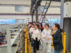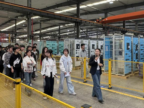 在南京大全电气采购经理的引导下,同学们先后走进数字化生产车间、智能检测中心及研发实验室,实地探访低压成套设备的全流程生产链路。车间内,抽屉生产流水线、一二次导线机器人自动加工设备、铜排智能加工线等核心装备高速运转,基于ERP、PLM、MES系统构建的数字化协同平台实现了生产过程的全程可视化管控。采购经理详细介绍了系列低压开关柜的生产工艺,以及产品在轨道交通、数据中心、城市地标等领域的应用案例,尤其对自主创新开发的DQM低压配电柜的安全设计、环保特性及便捷维护优势进行了重点讲解,让毕业生直观感受行业领军企业的技术实力与创新理念。