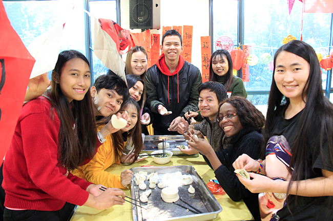 为了让来自不同国家的外国留学生们感受中国传统节日的氛围,体验春节的喜庆,永利官网于2019年1月26日在教工餐厅举行了外国留学生“欢聚南工院,品味中国年”迎新春活动,副校长霍雄飞,国际教育学院全体教师、班主任代表、宿管阿姨和寒假留校的八十余名外国留学生欢聚一堂,一起包饺子、写春联、送福字、挂灯笼,喜迎猪年新春佳节。