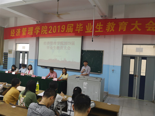 为了提高毕业生的安全意识,加强毕业生的思想引导和教育管理,帮助同学们把握更多毕业手续办理、资格审查、党组织关系转接及宿舍安全等信息,确保毕业生安全、顺利、文明离校。经济管理学院于5月28日下午在乐业楼阶梯教室召开了2019届毕业生教育大会。学院党总支副书记黄滢、教学办、学工办全体老师、毕业班班主任和2019届毕业生代表150人参加了本次会议,大会由张洁老师主持。