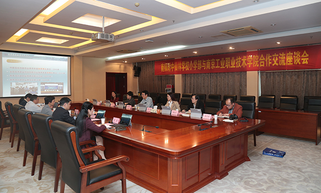 10月16日下午,南师附中仙林学校小学部肖全胜校长、胡彧书记、陈慧副校长、陈宏云副校长、夏翠霞副校长和校办曲文双主任等6位同志来到永利官网,参加两校合作交流座谈会。永利官网校长谢永华、党委副书记苏小冬、副校长朱建国以及党政办公室、工会、人事处等部门负责人热情接待了来访一行。座谈会由朱建国副校长主持。