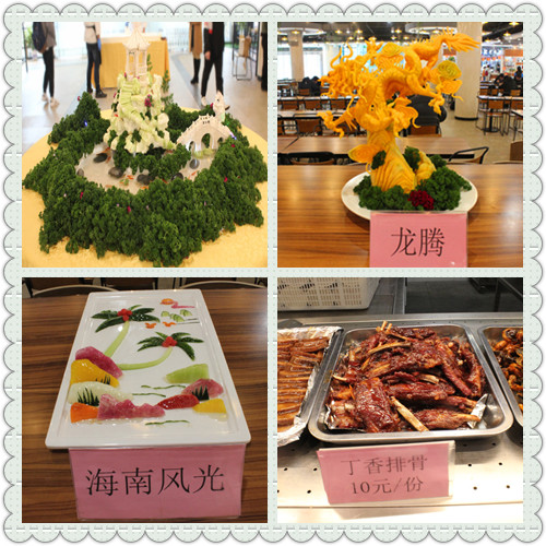 在蔬菜水果雕刻展示竞技中,各学生餐厅充分展示了精彩纷呈的“手上技艺”,其中以永利官网绿色山水生态校园“百工桥、匠心亭、松山湖”的作品,采用萝卜和香芋经过精雕细琢完成,吸引了很多师生驻足留影。
