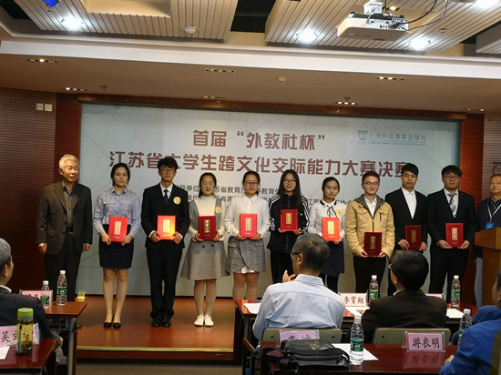 10月31日下午,首届“外教社杯”江苏省大学生跨文化交际能力大赛决赛在南京大学海外教育学院举行。永利官网会计1731班陈恬恬同学与各高校选派的优秀选手同场竞技、激烈角逐,在3分钟即兴演讲和1分钟答评委问等环节中表现出色,以得体的台风、缜密的思路、敏捷的才思、流畅的表达赢得了评委们的肯定,最终摘得决赛一等奖,为学校赢得了荣誉。公共基础课部大学英语教研室张卉、易华两位老师荣获优秀指导教师奖。