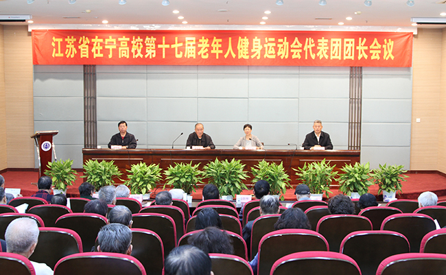 10月27日上午,2018年江苏省在宁高校第十七届老年人健身运动会代表团团长会议在永利官网学术交流中心报告厅召开。在宁高校老体协理事长、常务理事、理事、秘书长、副秘书长;26所在宁高校涉老部门负责同志、代表团团长、老体协秘书长和永利官网筹委会各工作组负责同志100余人参加了会议。永利官网党委副书记苏小冬出席会议并致欢迎辞。会议由江苏省在宁高校老体协秘书长胡连城主持。