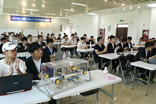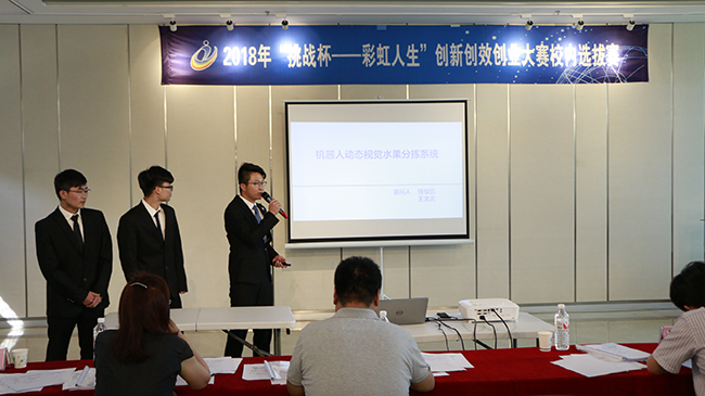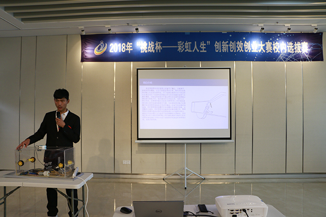 为有效搭建永利官网学生创新创业平台,增强永利官网学子创新创效、就业创业和职业转换能力,引导和激励职业学校学生弘扬时代精神、创新精神和实践能力,发掘和培养一批创新创效创业高素质技能人才。5月16日下午14:30,2018年“挑战杯——彩虹人生”职业学校创新创效创业大赛南工院选拔赛在大学生创新发展中心三楼举行,副校长霍雄飞以及来自学生工作部(处)、团委等部门负责人、指导教师等出席大赛。全国人大代表,国家技能大师,中国航天科工集团镇江海鹰特殊材料有限公司王巍、南京大学电子学院教授、国家电子实验室副主任庄建军、南京工业职业技术学院机械工程学院教授李彩虹担任了本次大赛的评委。来自学校9个学院的12支参赛团队经过初赛、复赛入围进行最终作品的展示和答辩,100余名师生现场观摩了比赛。