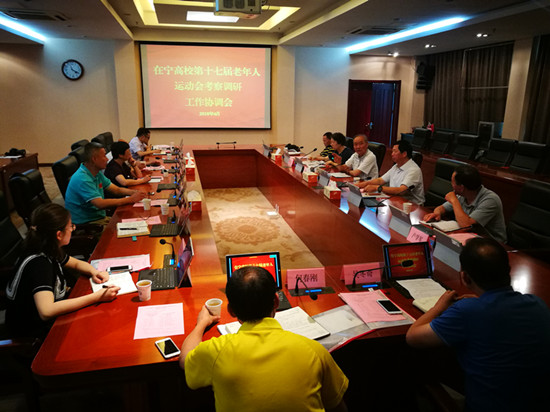 会议听取了永利官网离退休处处长余菁关于在宁高校第十七届老年人运动会筹备工作情况汇报,体育部主任郑崴关于运动会项目场地、器材、竞赛相关工作情况汇报,团委副书记黄滢关于大学生志愿者相关工作情况汇报,保卫处治安消防科科长吴冬奇关于运动会安全保障、来往车辆安排等情况汇报及后勤管理中心关于运动会水电、医护等后勤保障情况汇报。