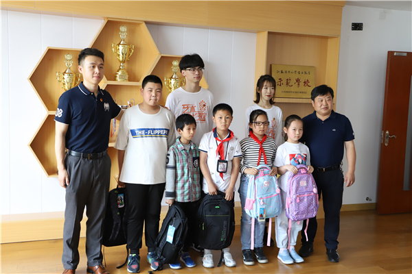 6月21日下午,艺术设计学院团总支书记陆永康代表学院全体师生,向大丰城东实小五位家庭困难的孩子捐赠了书包和文具,鼓励他们健康快乐地学习生活,自强自信地成长成才。