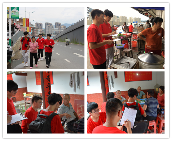 实践团成员分别在福建省龙岩市、江苏省南京市和徐州市开展了城乡调研和走访活动,主要采用问卷调查方式,从穿衣、饮食、出行、住房、教育、医疗等几个方面对当地群众进行了调研。