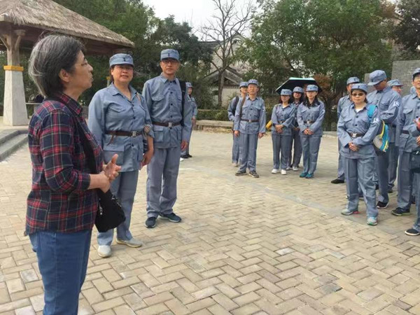 此次教育活动将听课了解历史、情境互动教学及红色素质拓展训练等形式有机结合起来。大家换上新四军军服在嘹亮的《新四军军歌》声中,以饱满的精神聆听“塘马战斗与铁军精神”主题讲座。江苏省新四军研究会理事、塘马铁军红色学校校长刘志庆给大家详细讲解了发生在1941年11月的著名的塘马战斗,原十六旅宣教科长许彧青女儿许小毅女士也给大家讲述了父辈们流血牺牲的抗战故事;在参观塘马战斗纪念广场、塘马战斗遗址、新四军十六旅指挥部旧址及重走新四军北上转战之路后,大家在实地亲身感受到新四军六师十六旅将士与三千多来犯日军浴血奋战、壮烈牺牲的英勇与悲壮,体会到罗忠毅旅长、廖海涛政委等革命先烈坚贞不屈、勇往直前、敢于斗争的革命英雄主义气概,并在重温入党誓词、人民教师誓词中受到教育与激励。