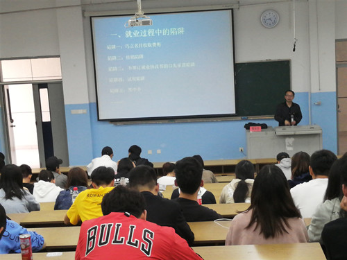 首先,高老师列举了毕业生在求职中可能会遇到的各种陷阱和盲区,并结合发生在身边的毕业生和朋友的求职经历,向同学们详细的介绍某些企业在面对刚从学校毕业的大学生使用的惯用“花招”,在场的一些毕业生也感同身受,连连附和;紧接着,高老师结合我国法律,对这些陷阱进行了法律层面上的分析,并提醒毕业生在求职中需要注意的一些法律细节,学会用法律知识保护自己,同时还给同学们介绍一些保护毕业生权益的法律法规,最后,高老师运用法律,对这些陷阱一一列出了巧妙的应对方法,高老师介绍的很多妙招让在场的毕业生连连称赞。高老师采用幽默风趣的表达方式,在合理运用法律法规上不失分量。同学们听了本次法律权益保障讲座,都感触颇深,收益良多,增长了相关法律知识。