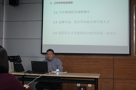 朱建国结合习近平新时代中国特色社会主义思想对标对表查找了我们工作中存在的八大问题并分别对这八个问题进行了分析,同时就如何加强永利官网教师队伍建设提出了七点思考与举措。随后,他深入浅出的谈了他对“初心使命”的感悟。他指出作为新时代人民教师必须坚定理想信念,要坚定对马克思主义的信仰,对社会主义和共产主义的信念;要做到“不忘初心、牢记使命”,必须做到“师德”、“师能”、“师责”相统一。我们深入学习贯彻习近平新时代中国特色社会主义思想,加强党的全面领导,要保证教师队伍建设的正确方向;突出第一标准,推进师德师风建设;适应发展需要,加大高层次人才引进与培养的力度;围绕效能优化,推进教师管理改革;拿出真招实招,保障教师成长与发展。