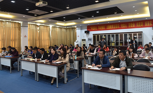 根据学校“不忘初心、牢记使命”主题教育的部署要求和具体工作安排,10月31日下午,党委副书记苏小冬在敬业楼315会议室讲授了题为《落实新时代高校思政课改革创新意见,培养有理想有本领有担当的时代新人》专题党课。参加党课学习的有党委组织部、党委统战部、党委宣传部、审计处、工会、离退休工作处、关工委秘书处、实验室与资产管理处、天管办、高教所、艺术设计学院、马克思主义学院、工程技术实训中心的党员同志共70余名。