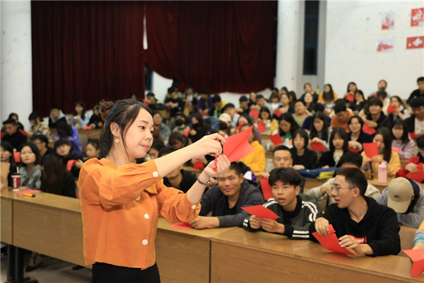 随后,翟天麟介绍了非物质文化遗产——撕纸文化的发展轨迹,并结合自身经历,与同学们畅聊自己的大学生活经历和成长历程,鼓励青年同学坚定信念,树立远大理想,为实现“两个一百年”的奋斗目标不懈努力。公开课的最后,她向部分同学赠送了自己亲手制作的撕纸纪念品。