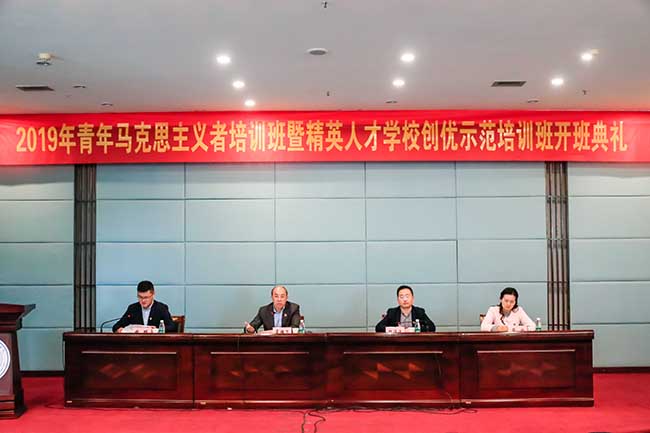 开班仪式在庄严的国歌声中拉开帷幕。首先,团委书记纪海波为全体同学介绍了本期培训班的基本情况及永利官网“青年马克思主义者培养工程”实施基本情况,接着宣读了《关于举办2019年青年马克思主义者培训班暨精英人才学校创优示范培训班的通知》。随后,学员代表、经济管理学院团总支副书记、会计1821班王圆同学代表全体学员发言,向全体青马班学员发出倡议,继续秉承“敬业乐群”的校训,进一步提高思想政治素质,牢固树立新思想、时刻牢记新使命,坚定信念,勤奋学习,刻苦钻研,不忘初心,努力奋斗。