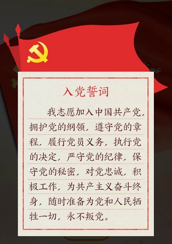 点开视频,飘扬的党旗背景下,入党誓词展现眼前,“我志愿加入中国共产党……”,当年的誓词今天读来,仍是激动万分,每位党员仿佛又回到当年入党的难忘情景,高举右手、面对党旗、庄严宣誓,愿意为党奋斗终生。