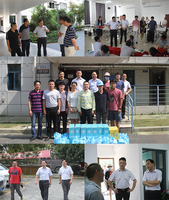 8月5日下午,学校领导吴学敏、谢永华带领党政办公室、工会等部门负责人,冒着高温酷暑,分别在仙林校区、天堂校区、中山校区走访慰问奋战在招生咨询、基建工程、后勤管理工作以及科技园公司等相关部门、单位的教职员工。