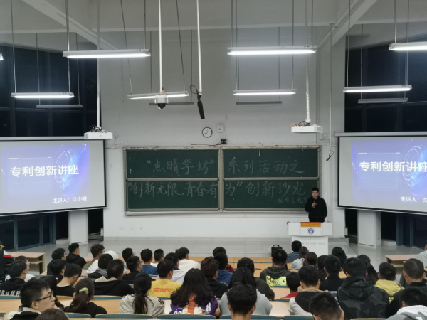 活动伊始,沈小响首先从“什么是专利”引入,围绕“创新无限 青春有为“这一主题,带领大家走进创新创业教育,鼓励同学们要学会用创新的思维去发掘生活中不一样的世界。针对科创中的专利申报,他围绕“什么是专利”、“专利的分类”、“如何撰写一份专利?”、“专利受理授权的流程”等内容进行详细阐述,在简述过程中,针对同学们的提问,他结合自己的科创实践经验进行分享,为同学们将来的创新之路起到了引领作用。