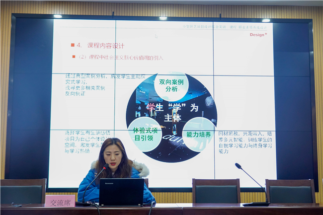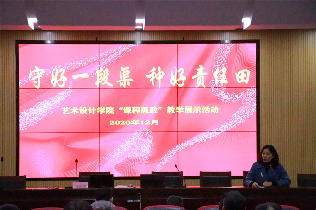 为深入贯彻落实全国高校思政工作会议、全国教育大会精神,落实立德树人根本任务,进一步推动课堂教学创新,构建三全育人大格局,艺术设计学院于12月2日下午开展课程思政教学展示活动。来自全院各教学部的7名老师分别就自己所承担的课程教授中融入思政相关元素开展课堂教学进行了示范展示。马克思主义学院院长王亚峰、教务处副处长王博进行了现场指导。