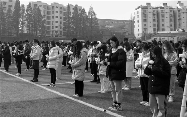 12月13日9时30分,艺术设计学院在天堂校区操场举行国家公祭日悼念活动。学院党总支副书记高原、辅导员及150多位同学参加悼念。