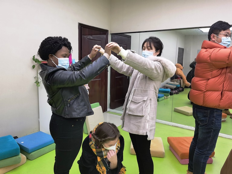团辅指导老师、大学生心理成长中心刘长虹生动活泼地讲解了心理团辅项目的规则,带领师生们开展了团辅活动,现场互动频繁,笑声不断,留学生们全神贯注、积极投入。