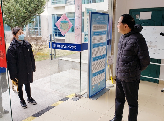 吴学敏代表学校向留园宿舍管理人员和国际教育学院值班人员表示新春的问候。他详细了解留园宿舍日常管理和在校留学生情况,叮嘱值班人员必须继续保持各项疫情防控措施,严格规范在校留学生管理,及时发现并妥善处理在校留学生的合理诉求。