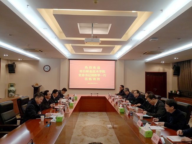 4月1日上午,邢台职业技术学院党委书记刘彩琴一行来永利官网考察调研。党委书记吴学敏、党委副书记马成荣,以及党委组织部、学工处等部门负责同志在行政楼辅楼一楼会议室接待了来宾。