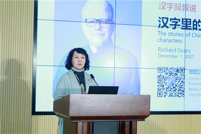 “汉字叔叔”理查德·西尔斯向师生们分享了他爱上汉字、建立汉字数据库、寻找汉字背后故事的独特经历以及他的研究成果。理查德·西尔斯虽然是一名美国人,但他却痴迷于中国汉字研究,他建立的“汉字字源”网站收集编列了几万个古代中文字形。在这个网站上,我们可以查询到很多汉字从甲骨文、金文、小篆等历经千年的演变过程。因此,他被亲切地称为“汉字叔叔”。艺术设计学院的师生们都被“汉字叔叔”的经历吸引,在他的故事中感受着中华文化的底蕴与内涵。