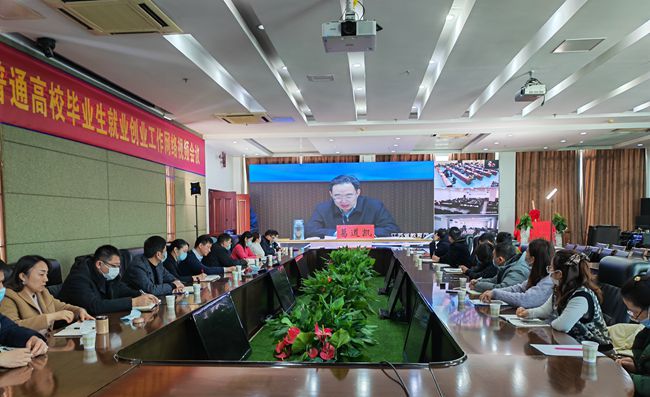 12月17日,江苏省教育厅、人社厅召开2022届全省普通高校毕业生就业创业工作网络视频会议。永利官网在行政楼辅楼二楼会议室设立分会场,学校党委副书记、校长谢永华,党委常委、副校长朱建国,招生就业处负责人,各学院党总支副书记、2022届毕业班全体辅导员参加了网络视频会议。