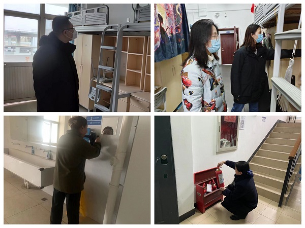 检查组围绕校区内实验室安全、消防安全、宿舍安全、食品卫生和食堂安全、建筑物安全等方面进行全面检查,实地走访天堂校区实训场所、食堂、学生宿舍、综合楼、消防泵房、人防地下室等重点部位,重点对各场所用火、水电安全,设施、设备安全、食品备餐情况等开展风险隐患排查和整治。就综合楼、学生公寓、人防地下室、校园内安防系统等出现的问题,详细记录在案,统一汇总上报校保卫处,同时组织安排相关科室和人员进行维修,排除安全隐患。检查过程中,引导各部门高度重视安保工作,牢固树立“安全无小事”思想,严格落实“人防、物防、技防”工作措施,提高思想警觉性,增强安全防范意识和管理意识,并联合相关部门定期动态排查可能存在的矛盾隐患。