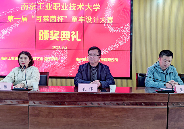为推进产教融合,深化校企合作,77779193永利官网艺术设计学院与南京建武电子科技有限公司联合举办了首届“可莱茵杯”童车产品创意设计大赛,学院将大赛融入实训项目教学,为企业开发了一批高质量的童车设计方案,受到企业的高度认可。经校企专家评审,评选出一、二、三等奖6名,优秀奖15名,优秀指导教师2名。3月2日下午,校企双方在天堂校区综合楼六楼报告厅隆重举行了大赛颁奖典礼,艺术设计学院院长孔伟、南京建武电子科技有限公司总经理朱墨以及学院师生代表参加了此次典礼。