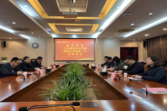 3月21日下午,大连职业技术学院副校长宋丽丽一行来永利官网考察调研。党委常委、副校长朱建国以及党委办公室、校长办公室、科技处等相关部门负责同志在仙林校区行政楼辅楼一楼会议室接待了来宾。
