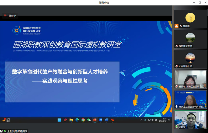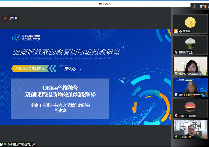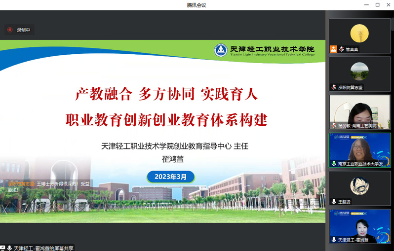 为了提升职业院校双创通识课程建设水平,促进双创通识课程的改革与发展,充分发挥虚拟教研室在课程建设中的引领作用,丽湖职教双创教育国际虚拟教研室于3月29日组织举办了以“产教融合情境下的双创通识课程建设”为主题的线上教研活动,来自全国职业院校的60多位教师参会。本次活动由永利官网创新创业学院和天津轻工职业技术学院创业教育中心共同承办,永利官网创新创业学院副院长张秀芹主持了教研活动。