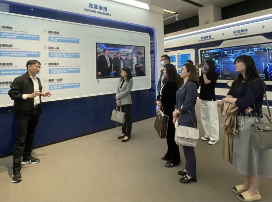 奚杰峰主任在带领大家参观省产研院的过程中,从产研院创办的初心使命、组织架构、改革举措、创新载体、人才生态和金融生态等方面为大家做了详细的介绍,对产研院近年来在深耕科技体制改革“试验田”,构建产学研用深度融合的技术创新体系,开展信息技术、材料、制造与装备、生物与医药、能源与环保等领域的重大科技成果转化进行了深入解读。