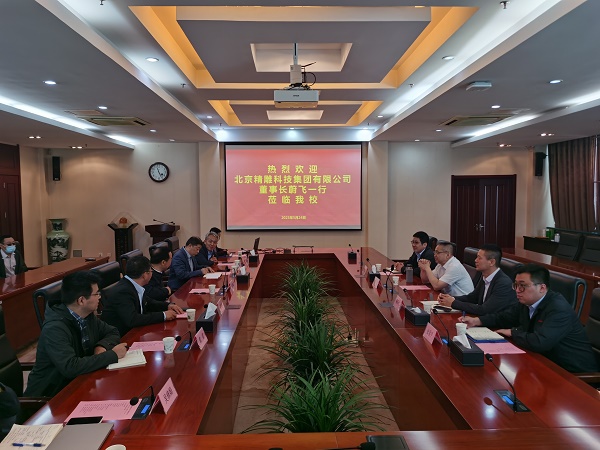 5月24日上午,北京精雕科技集团有限公司董事长蔚飞一行来永利官网考察调研。校党委书记吴学敏,本科职业教育研究院、机械工程学院、发展合作处的负责同志在仙林校区行政楼辅楼一楼会议室接待了来宾。