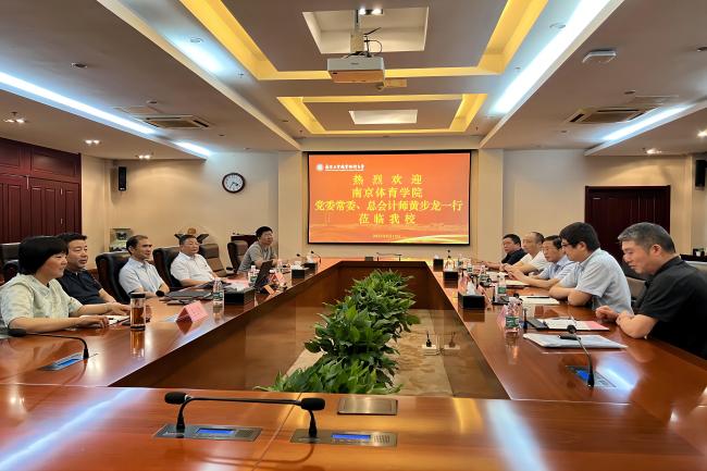 6月15日下午,南京体育学院党委常委、总会计师黄步龙一行来永利官网考察调研。党委常委、纪委书记、省监委派驻监察专员邱正祥,党委常委、副校长朱建国以及计财处、国资处和后勤中心的负责同志在仙林校区行政楼辅楼一楼会议室接待了来宾。