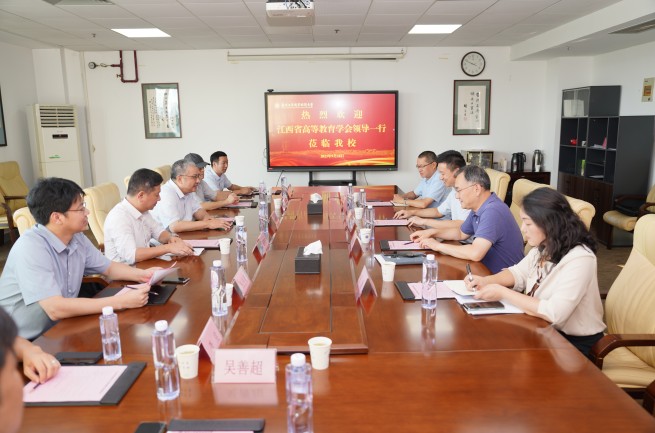 9月18日下午,江西省高等教育学会副会长兼秘书长、江西省教育厅副总督学肖德征一行来永利官网考察调研。学校党委副书记、校长谢永华,党委常委、副校长潘旭海以及教务处、科技处的负责同志在仙林校区行政楼401会议室接待了来宾。