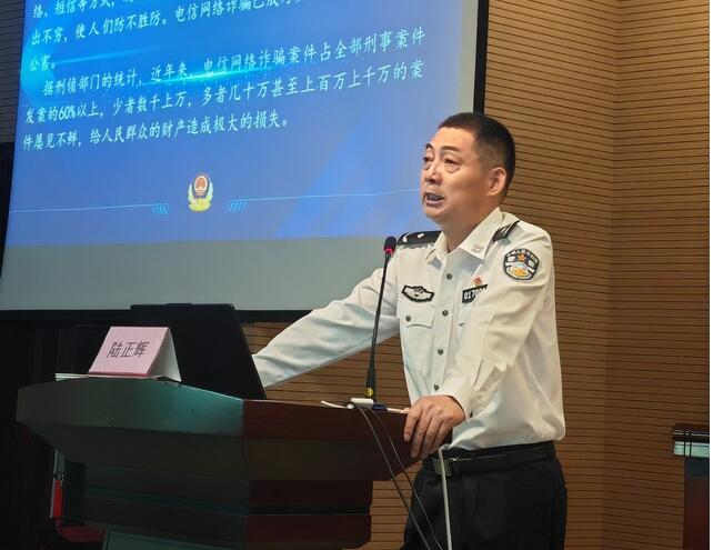 陆正辉结合自身多年的办案经验,通过6个典型案例生动形象地阐述“刷单返利”“网络购物”“冒充身份”等三类电信网络诈骗形式和陷阱诈骗,告诫学生不要被假象所迷惑,不要贪图小便宜,不要为盈利骗局所诱惑而上当受骗。他特别强调“帮信罪”中受骗群体学生占大部分,犯罪分子会想尽一切办法和手段获取别人的电话卡、银行卡,用于实施诈骗、转移赃款,告诫广大学生要擦亮眼睛,警惕各类陷阱、坚决不做“引流人”。