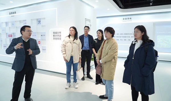 访企过程中,润芯微科技CEO刘青、联合创始人张明俊、人事总监黄伟健、汽车业务销售总监尹振伍通过企业宣传片、企业展厅讲解的方式,向交通工程学院参观团队详细介绍了公司的发展历程、合作伙伴、企业文化、未来的发展规划等内容。随后,黄伟健就目前智能网联汽车产业发展的现状、人才的需求等做了详细的介绍。企业对学院能够积极走进企业推荐人才表示感谢,希望就汽车行业的发展能够与学院携手建立长期的合作关系,发挥各自优势、共同促进发展。