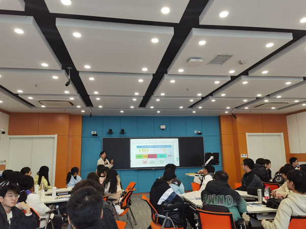 李晨希本次授课的主题为《职业世界探索》,从“职业世界新趋势与形势”和“探索职业世界的方法和途径”两个方面带领同学们走进职业世界,提高求职就业能力。她以曾任职于世界500强企业宝洁公司,长期从事学生教育和职业指导工作的经历出发,基于问题导向,通过互动问答开启课堂,激发了同学们的兴趣。运用大量最新的就业数据,帮助同学们分析当前高校毕业生就业的压力、行业发展的冷热不均以及行业新机遇新赛道,展示了毕业生就业城市选择的新动向和毕业生求职心理的变化。同时通过一系列的模型演示,和同学们共同进行职业定位探索,了解了职业世界的探索方法,让同学们认识到必须保持对职业世界的关注和敏锐观察,明晰自己的核心优势,规划动态成长轨迹。