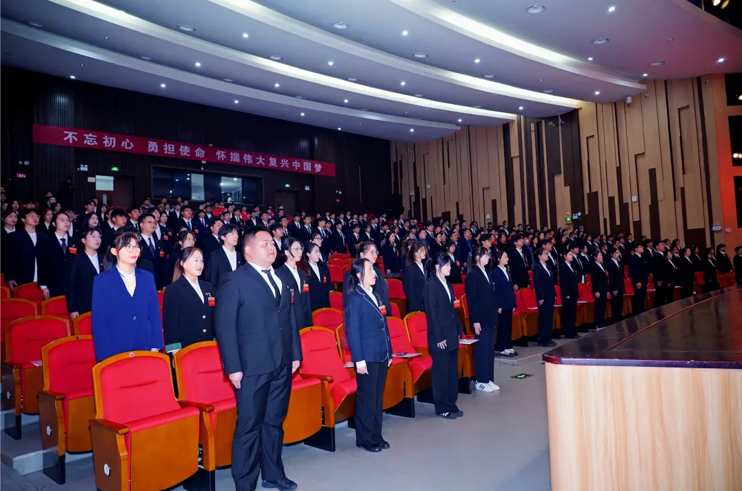 团委书记纪海波老师代表校团委致辞,并号召广大青年学子高举旗帜跟党走,要把党的各项精神“传下去”,在青年中间做好宣讲员;要把学生工作扎扎实实“干下去”,带领青年勇做开拓者;要把服务学生的手臂“伸下去”,做真正服务青年的实干家!