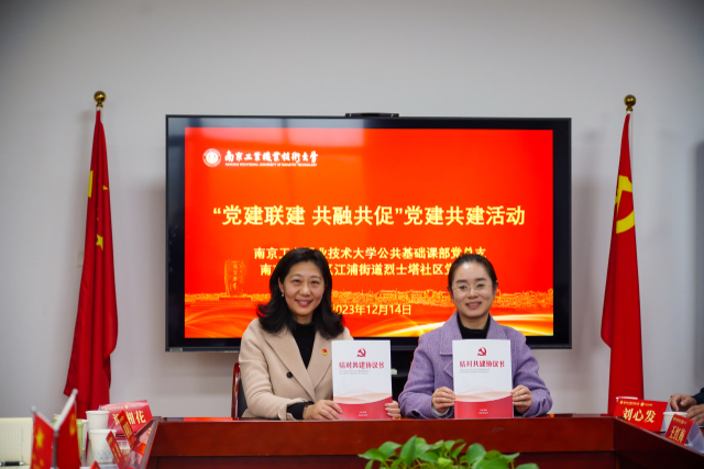 12月14日下午,公共基础课部党总支与浦口区江浦街道烈士塔社区联合开展“党建联建共融共促”签约仪式。公共基础课部党总支书记王丽丽,烈士塔社区党总支书记孙欢欢、党总支副书记史明俊,公共基础课部副主任江颖及公共基础课部各支部书记、副书记,烈士塔社区各支部书记参加了共建签约仪式。