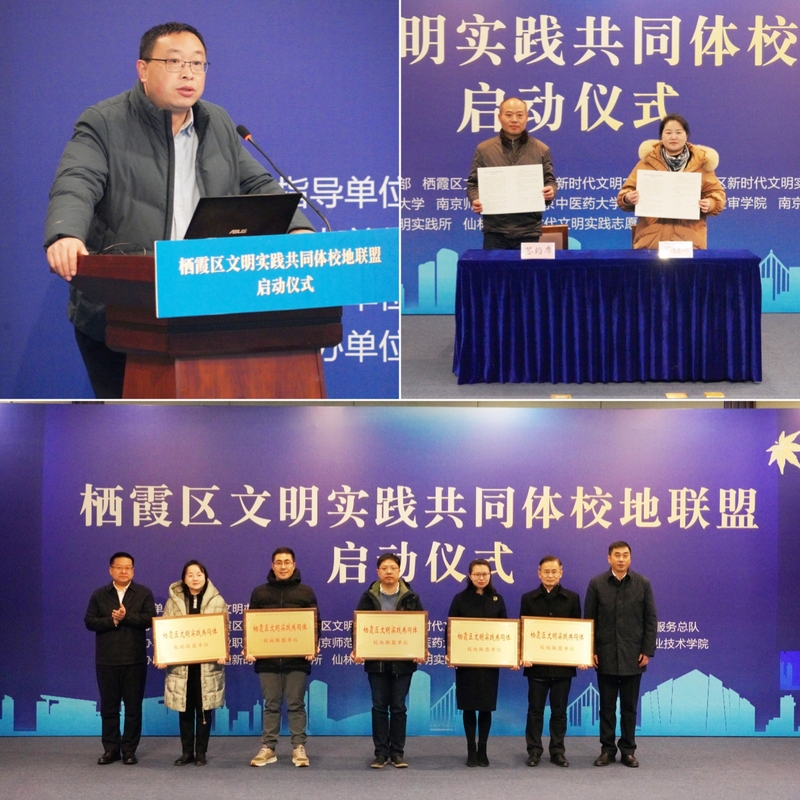 12月25日上午,“栖霞区文明实践共同体校地联盟启动仪式”在永利官网成功举办。此次活动由中共栖霞区委宣传部、栖霞区新时代文明实践中心主办,联合永利官网与南京师范大学、南京中医药大学、南京审计大学金审学院、南京信息职业技术学院等五所高校以及仙林街道,共建“栖霞区文明实践共同体校地联盟”。南京市委宣传部道德建设指导处、77779193永利官网、南京信息职业技术学院、南京中医药大学、南京师范大学、南京审计大学金审学院、仙林街道相关领导出席会议。