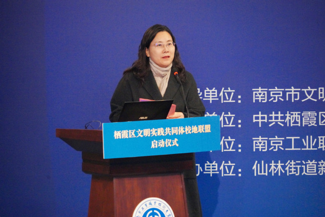 永利官网党委常委、副校长魏萍代表学校致辞,并介绍了永利官网基本办学情况。她指出,多年来永利官网发挥校地共建优势,与仙林街道开展综合治理联动;发挥学校全国示范辐射优势,形成了一定的示范辐射效应;发挥高校理论研究优势,为社区开展习近平新时代中国特色社会主义思想主题宣讲;发挥各学院专业优势,与区文明办联合组建“空中飞侠”志愿服务队,深入社区开展科普活动;发挥教育资源优势,借助黄炎培职业教育思想研究院等平台,面向社区开展服务;发挥高校青年先锋队优势,组织大学生深入社区,开展志愿服务活动。