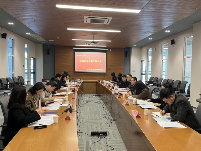 最后,潘旭海提出相关工作要求。一是要加大对创新创业课程建设、教材开发、教学资源建设的推进力度,促进永利官网双创工作服务省域内高校师生;二是要持续推进“校企行”专项行动、精益创业带动就业专项行动,相关职能部门及各二级学院要切实把专项行动融入本年度重点工作;三是要重视国家双创示范基地、国家级双创学院相关数据填报工作,要确保数据真实、全面、可追溯、有支撑;四是要重视创新创业文化节相关工作,依据部门工作特点、专业特色打造品牌活动,集中优势,对外发声,形成品牌示范效应。