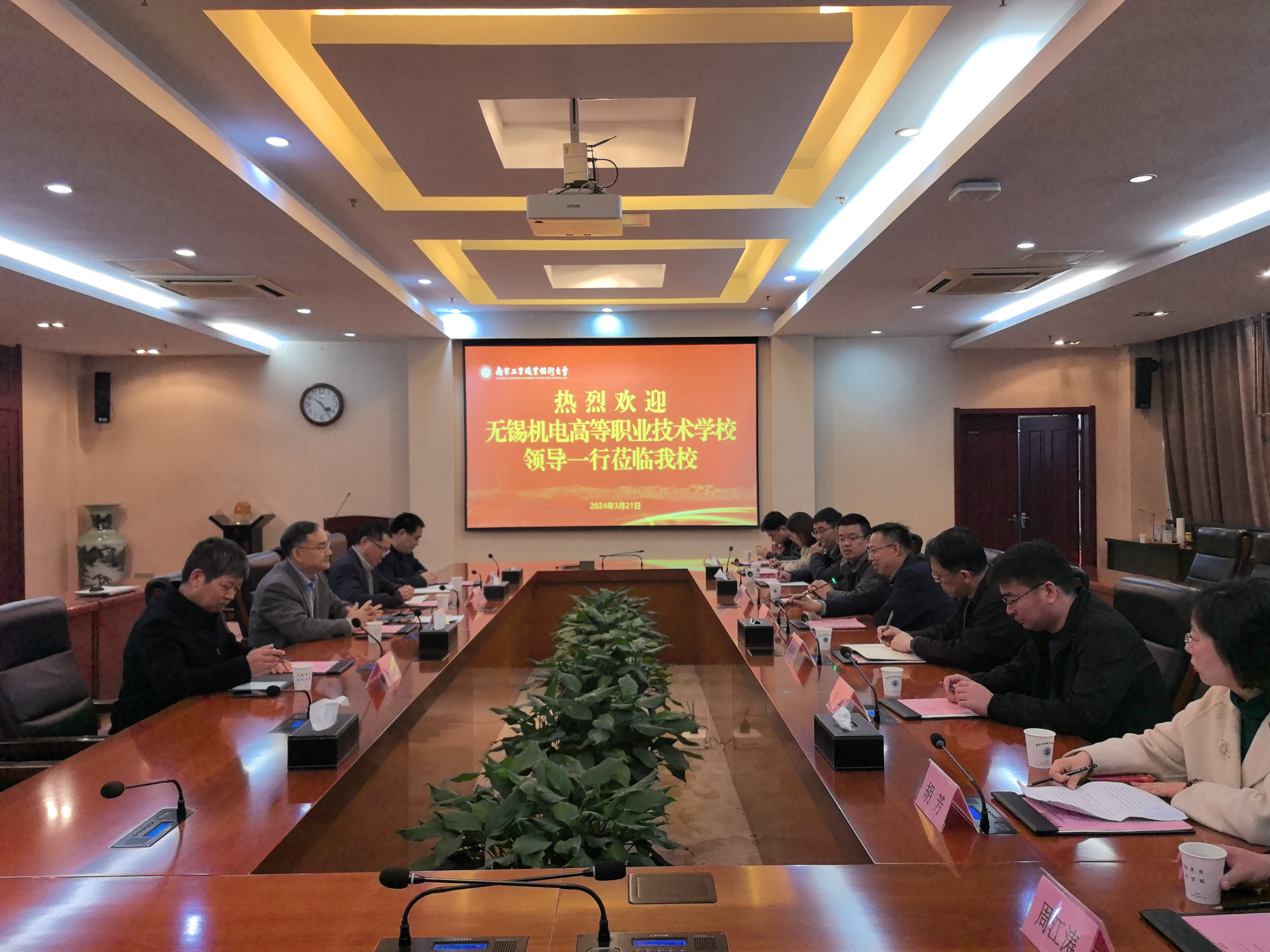 3月21日上午,无锡机电高等职业技术学校党委书记蔡军、校长莫剑中一行来永利官网考察调研。永利官网党委常委、副校长潘旭海在仙林校区行政楼辅楼一楼会议室接待了来宾。